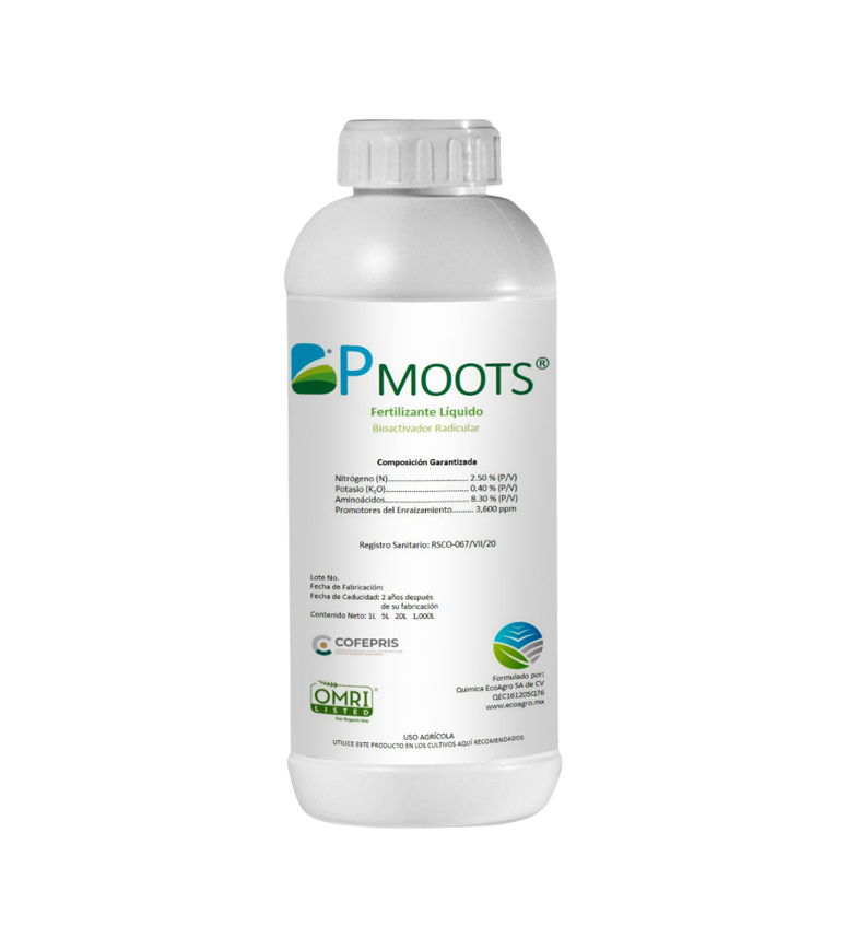 BP Moots is an organic root biostimulant containing in 3600 ppm of auxin hormones that increases the formation of rhizomes, lateral, and adventitious roots. In addition, it contains carbohydrates and L-amino acids, which are used by plants as an easily assimilable energy source thereby increasing nutrient adsorption capacity.