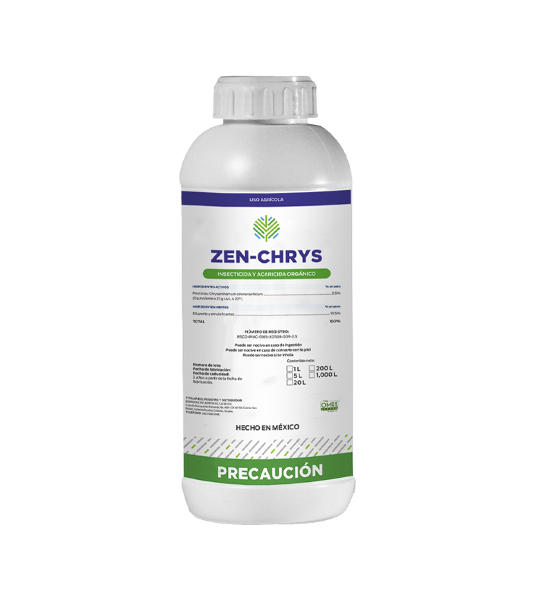 ZEN-CHRYS is an organic insecticide and acaricide made from natural extracts and pyrethrins, acts by contact and ingestion.